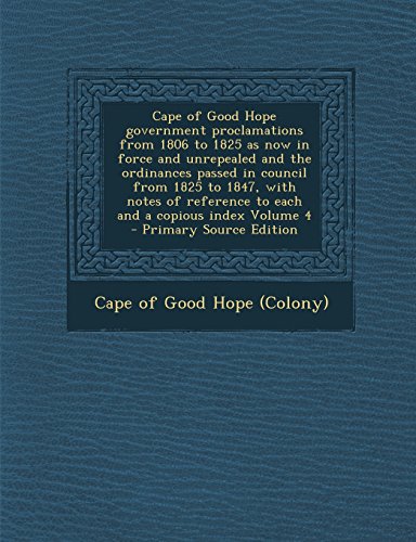 Cape of Good Hope Government Proclamations from 1806 to 1825 as Now in Force and Unrepealed and the Ordinances Passed in Council from 1825 to 1847, Wi full version