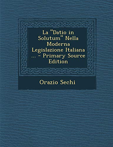 La Datio in Solutum Nella Moderna Legislazione Italiana ... - Primary Source Edition (Italian Edition) full version