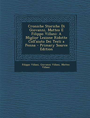Croniche Storiche Di Giovanni, Matteo E Filippo Villani: A Miglior Lezione Ridotte Coll'aiuto Dei Testi a Penna - Primary Source Edition (Italian Edition) full version