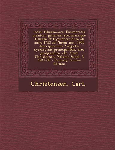 Index filicum, sive, Enumeratio omnium generum specierumque filicum et Hydropteridum ab anno 1753 ad finem anni 1905 descriptorium ? adjectis ... Volume Suppl. 3 1917-33 (Latin Edition) full version