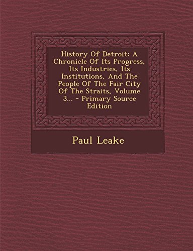 History Of Detroit: A Chronicle Of Its Progress, Its Industries, Its Institutions, And The People Of The Fair City Of The Straits, Volume 3... full version