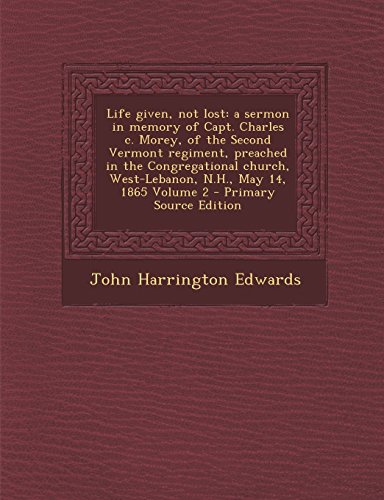 Life Given, Not Lost: A Sermon in Memory of Capt. Charles C. Morey, of the Second Vermont Regiment, Preached in the Congregational Church, W full version