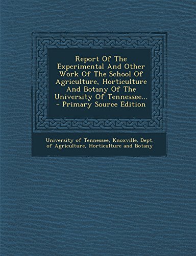 Report of the Experimental and Other Work of the School of Agriculture, Horticulture and Botany of the University of Tennessee... - Primary Source EDI full version