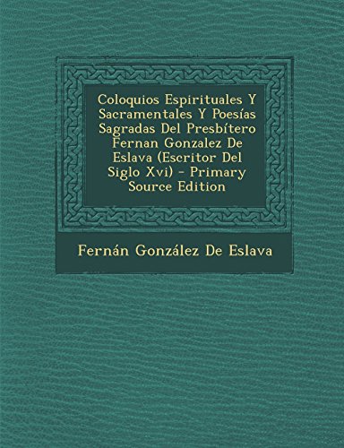 Coloquios Espirituales Y Sacramentales Y Poesías Sagradas Del Presbítero Fernan Gonzalez De Eslava (Escritor Del Siglo Xvi) (Spanish Edition) full version