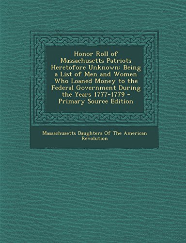 Honor Roll of Massachusetts Patriots Heretofore Unknown: Being a List of Men and Women Who Loaned Money to the Federal Government During the Years 177 full version