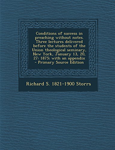 Conditions of Success in Preaching Without Notes. Three Lectures Delivered Before the Students of the Union Theological Seminary, New York, January 13 full version
