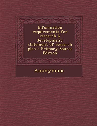 Information requirements for research & development: statement of research plan full version