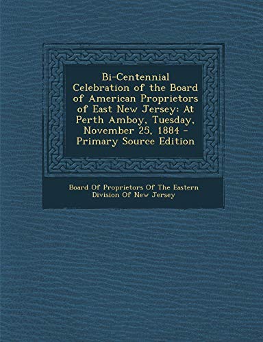 Bi-Centennial Celebration of the Board of American Proprietors of East New Jersey: At Perth Amboy, Tuesday, November 25, 1884 - Primary Source Edition full version
