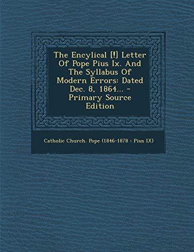 The Encylical [!] Letter Of Pope Pius Ix. And The Syllabus Of Modern Errors: Dated Dec. 8, 1864... (Latin Edition) full version