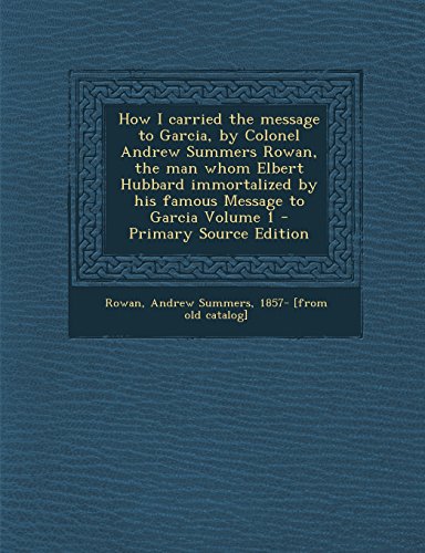 How I carried the message to Garcia, by Colonel Andrew Summers Rowan, the man whom Elbert Hubbard immortalized by his famous Message to Garcia Volume 1 - Primary Source Edition full version