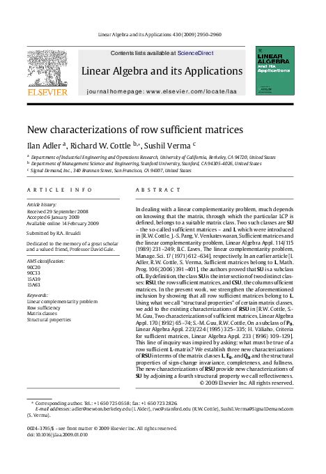 Two Characterizations of Sufficient Matrices full version