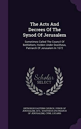 The Acts And Decrees Of The Synod Of Jerusalem: Sometimes Called The Council Of Bethlehem, Holden Under Dositheus, Patriarch Of Jerusalem In 1672 full version