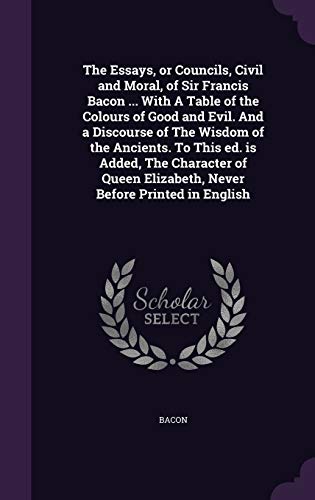 You are about to access our book library "The Essays, or Councils, Civil and Moral, of Sir Francis Bacon ... With A Table of the Colours of Good and Evil. And a Discourse of The Wisdom of the ... Elizabeth, Never Before Printed in English full version"