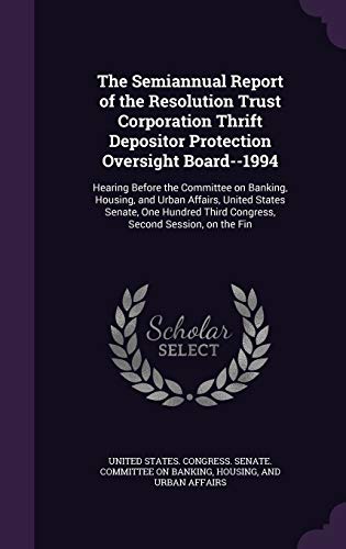 You are about to access our book library "The Semiannual Report of the Resolution Trust Corporation Thrift Depositor Protection Oversight Board--1994: Hearing Before the Committee on Banking, ... Third Congress, Second Session, on the Fin full version"