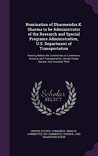 You are about to access our book library "Nomination of Dharmendra K. Sharma to be Administrator of the Research and Special Programs Administration, U.S. Department of Transportation: Hearing ... United States Senate, One Hundred Third full version"
