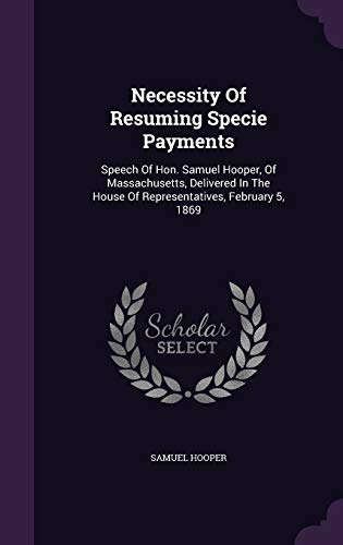 Necessity Of Resuming Specie Payments: Speech Of Hon. Samuel Hooper, Of Massachusetts, Delivered In The House Of Representatives, February 5, 1869 full version