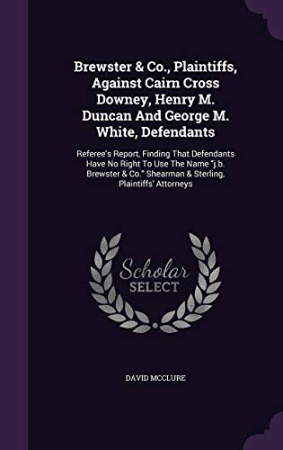 You are about to access our book library "Brewster & Co., Plaintiffs, Against Cairn Cross Downey, Henry M. Duncan And George M. White, Defendants: Referee's Report, Finding That Defendants ... Shearman & Sterling, Plaintiffs' Attorneys full version"