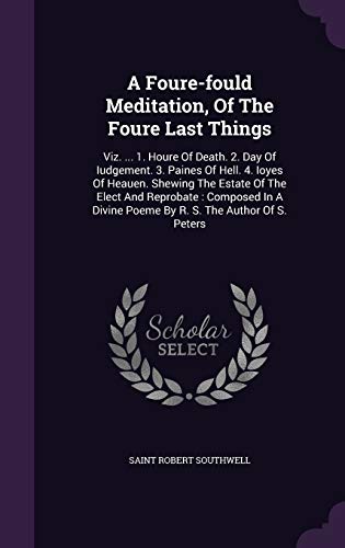 You are about to access our book library "A Foure-fould Meditation, Of The Foure Last Things: Viz. ... 1. Houre Of Death. 2. Day Of Iudgement. 3. Paines Of Hell. 4. Ioyes Of Heauen. Shewing ... Divine Poeme By R. S. The Author Of S. Peters full version"