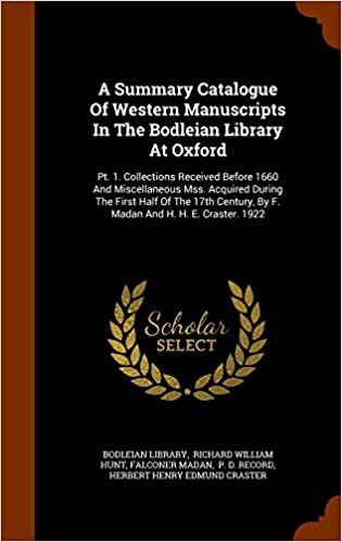 A Summary Catalogue of Western Manuscripts in the Bodleian Library at Oxford: PT. 1. Collections Received Before 1660 and Miscellaneous Mss. Acquired During the First Half of the 17th Century full version