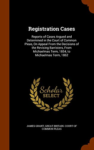 You are about to access our book library "Registration Cases: Reports of Cases Argued and Determined in the Court of Common Pleas, On Appeal From the Decisions of the Revising Barristers, From Michaelmas Term, 1854, to Michaelmas Term, 1862 full version"
