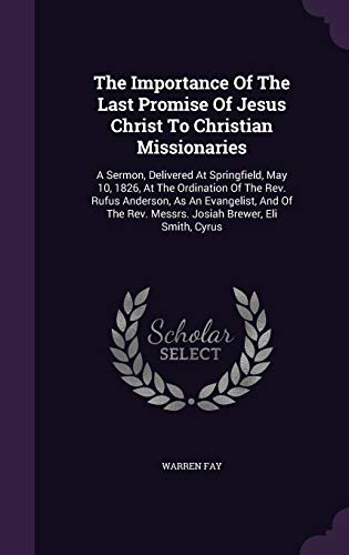 You are about to access our book library "The Importance Of The Last Promise Of Jesus Christ To Christian Missionaries: A Sermon, Delivered At Springfield, May 10, 1826, At The Ordination Of ... Rev. Messrs. Josiah Brewer, Eli Smith, Cyrus full version"