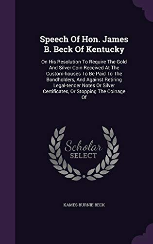 Speech Of Hon. James B. Beck Of Kentucky: On His Resolution To Require The Gold And Silver Coin Received At The Custom-houses To Be Paid To The ... Certificates, Or Stopping The Coinage Of full version