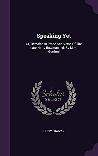 Speaking Yet: Or, Remains In Prose And Verse Of The Late Hetty Bowman [ed. By M.m. Gordon] full version