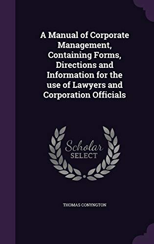A Manual of Corporate Management, Containing Forms, Directions and Information for the use of Lawyers and Corporation Officials full version