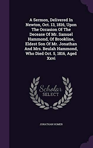 You are about to access our book library "A Sermon, Delivered In Newton, Oct. 13, 1816, Upon The Occasion Of The Decease Of Mr. Samuel Hammond, Of Brookline, Eldest Son Of Mr. Jonathan And Mrs. Beulah Hammond, Who Died Oct. 5, 1816, Aged Xxvi full version"