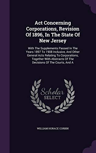 Act Concerning Corporations, Revision Of 1896, In The State Of New Jersey: With The Supplements Passed In The Years 1897 To 1908 Inclusive, And Other ... Of The Decisions Of The Courts, And A full version