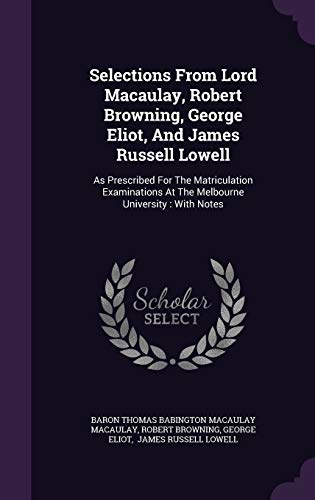 Selections From Lord Macaulay, Robert Browning, George Eliot, And James Russell Lowell: As Prescribed For The Matriculation Examinations At The Melbourne University : With Notes full version