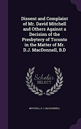 Dissent and Complaint of Mr. David Mitchell and Others Against a Decision of the Presbytery of Toronto in the Matter of Mr. D.J. MacDonnell, B.D full version