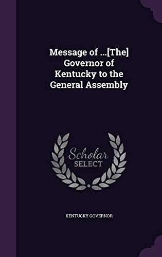 Message of ...[The] Governor of Kentucky to the General Assembly full version