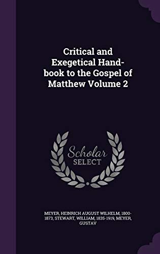 Critical and Exegetical Hand-book to the Gospel of Matthew Volume 2 full version