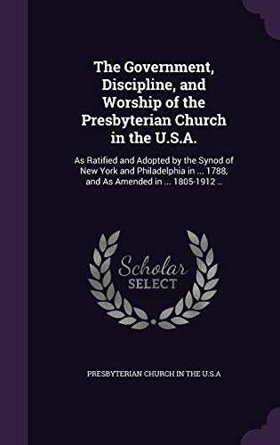 You are about to access our book library "The Government, Discipline, and Worship of the Presbyterian Church in the U.S.A.: As Ratified and Adopted by the Synod of New York and Philadelphia in ... 1788, and As Amended in ... 1805-1912 .. full version"