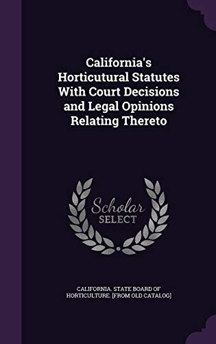 California's Horticutural Statutes With Court Decisions and Legal Opinions Relating Thereto full version