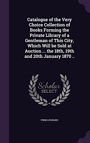 Catalogue of the Very Choice Collection of Books Forming the Private Library of a Gentleman of This City, Which Will be Sold at Auction ... the 18th, 19th and 20th January 1870 .. full version