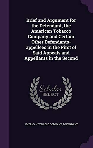 Brief and Argument for the Defendant, the American Tobacco Company and Certain Other Defendants-appellees in the First of Said Appeals and Appellants in the Second full version