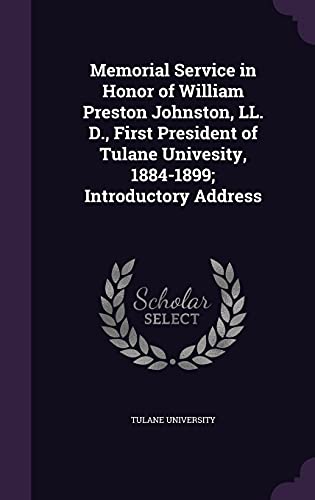 Memorial Service in Honor of William Preston Johnston, LL. D., First President of Tulane Univesity, 1884-1899; Introductory Address full version