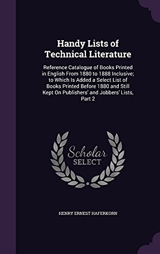 You are about to access our book library "Handy Lists of Technical Literature: Reference Catalogue of Books Printed in English From 1880 to 1888 Inclusive; to Which Is Added a Select List of ... On Publishers' and Jobbers' Lists, Part 2 full version"