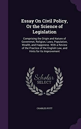 Essay On Civil Policy, Or the Science of Legislation: Comprising the Origin and Nature of Governmet, Religion, Laws, Population, Wealth, and ... English Law, and Hints for Its Improvement full version