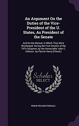 You are about to access our book library "An Argument On the Duties of the Vice-President of the U. States, As President of the Senate: And On the Manner in Which They Were Discharged, During ... John C. Calhoun. by Patrick Henry [Pseud.] full version"