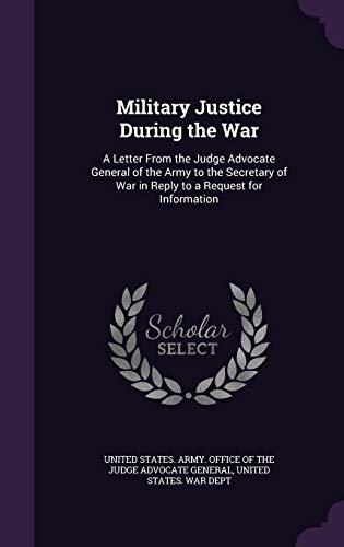 Military Justice During the War: A Letter From the Judge Advocate General of the Army to the Secretary of War in Reply to a Request for Information full version