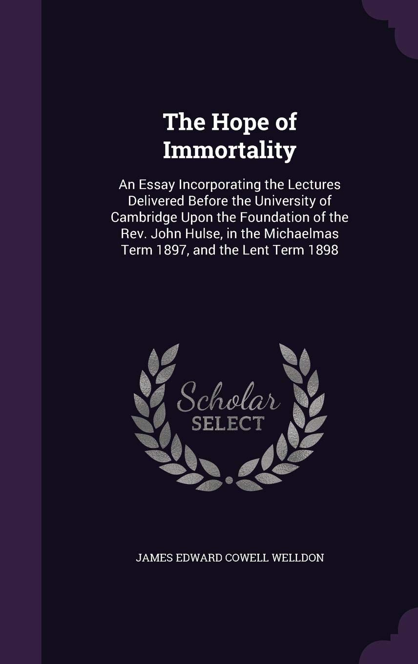 You are about to access our book library "The Hope of Immortality: An Essay Incorporating the Lectures Delivered Before the University of Cambridge Upon the Foundation of the Rev. John Hulse, ... Michaelmas Term 1897, and the Lent Term 1898 full version"