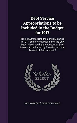 You are about to access our book library "Debt Service Appropriations to be Included in the Budget for 1917: Tables Summarizing the Bonds Maturing in 1917, and Interest Payable on the City ... Taxation, and the Amount of Said Interest T full version"