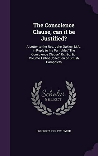 You are about to access our book library "The Conscience Clause, can it be Justified?: A Letter to the Rev. John Oakley, M.A., in Reply to his Pamphlet "The Conscience Clause," &c. &c. &c. Volume Talbot Collection of British Pamphlets full version"