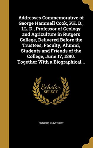 Addresses Commemorative of George Hammell Cook, PH. D., LL. D., Professor of Geology and Agriculture in Rutgers College, Delivered Before the ... 17, 1890. Together With a Biographical... full version