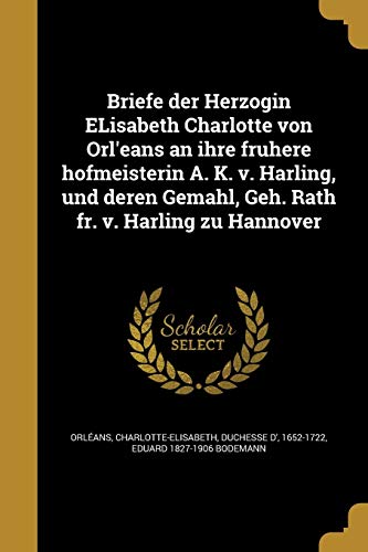 Briefe der Herzogin ELisabeth Charlotte von Orl'eans an ihre fruhere hofmeisterin A. K. v. Harling, und deren Gemahl, Geh. Rath fr. v. Harling zu Hannover (German Edition) full version