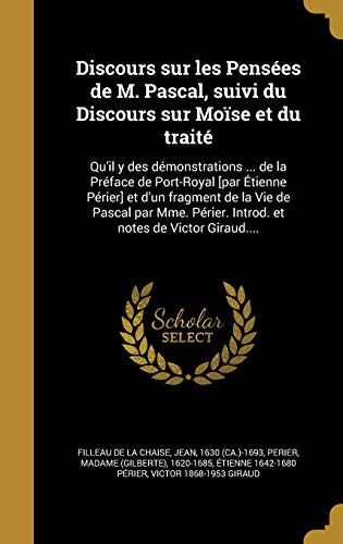 You are about to access our book library "Discours sur les Pensées de M. Pascal, suivi du Discours sur Moïse et du traité: Qu'il y des démonstrations ... de la Préface de Port-Royal [par ... notes de Victor Giraud.... (French Edition) full version"