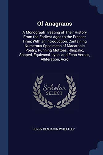 You are about to access our book library "Of Anagrams: A Monograph Treating of Their History From the Earliest Ages to the Present Time; With an Introduction, Containing Numerous Specimens of ... Lyon, and Echo Verses, Alliteration, Acro full version"